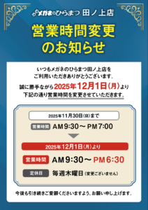 2025年12月1日(月)より営業時間を【AM 9:30~PM 6:30】へ変更させていただきます。